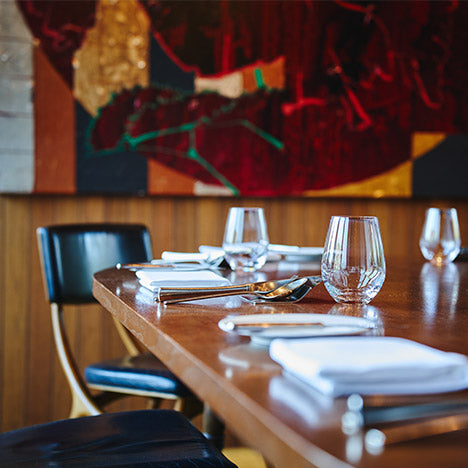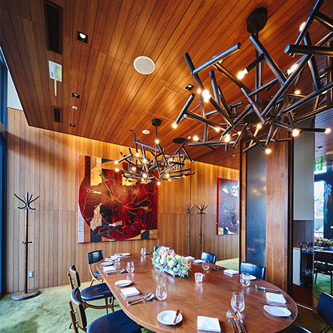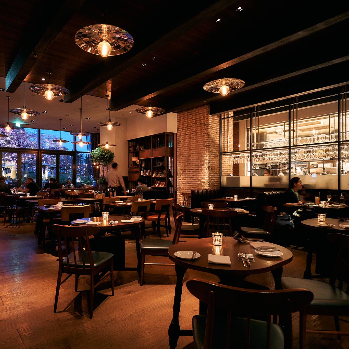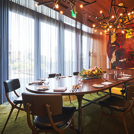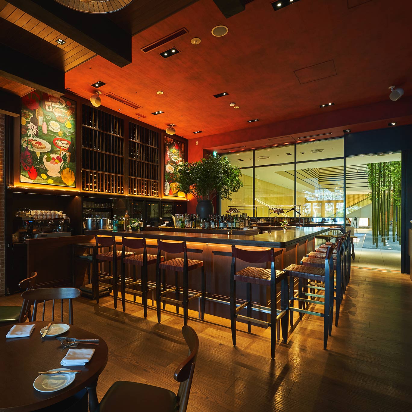 The dining area boasts a natural ambiance with use of wood. The walls are decorated with stylish paintings by New York artists, and when you look out the windows, you'll be greeted by a beautiful view of lush greenery, enhancing the luxurious atmosphere. With both table and sofa seating available, you can easily select the arrangement that best fits your occasion and group size.